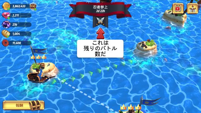 | 3 | 眼帯の島 | 1m40s | 1 | +2回の追加バトル |