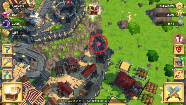 サイロの右上の民家を連打していると、1日1回だけジェムが入手できる。