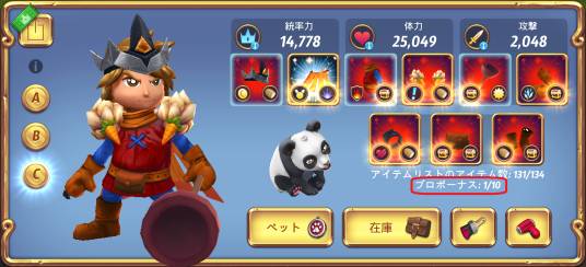 - プロボーナスはプロ装備各部全9種+プロペット1種の全10種あり、プレイヤー画面でカウントされる