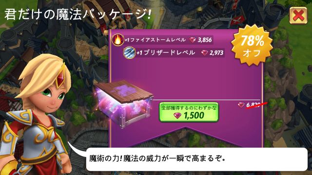 パッケージはジェムで購入できる複数の特典がまとめられたもので、元の特典の総計よりも大幅に割引されています。