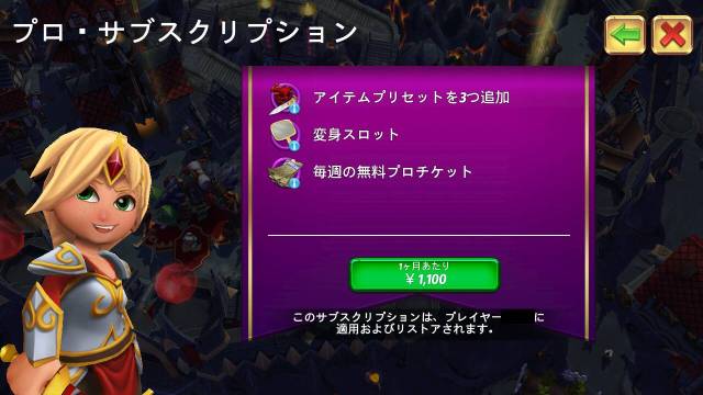 購入する事で1ヶ月間、特典が得られるパック。要は月額課金